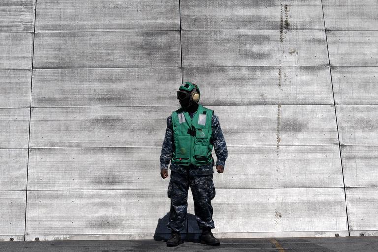 | Keywords: US Navy 100501-N-7605J-349 Aviation Boatswain's Mate (Equipment) Airman Recruit Kywane Lindsay-Small stands in front of a jet blast deflector (JBD) during a flight deck drill.jpg en SAN DIEGO May 1 2010 Aviation Boatswain's Mate Equipment Airman Recruit Kywane Lindsay-Small stands in front of a jet blast deflector JBD during a flight deck drill aboard the aircraft carrier USS Ronald Reagan CVN 76 The JBD protects flight deck personnel from aircraft engine exhaust Ronald Reagan is performing crew certification training to ensure battle readiness for upcoming deployments U S Navy photo by Mass Communication Specialist Seam 2010-05-01 100501-N-7605J-349 Navy http //www navy mil/view_image asp id 84938 U S Navy photo PD-USGov-Military-Navy Training on USS Ronald Reagan CVN-76 Aviation Boatswain's Mates Equipment Blast deflectors on USS Ronald Reagan CVN-76 |