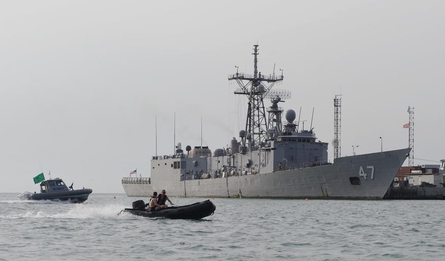 Keywords: US Navy 100505-N-7526R-030 Small boats plit off as they conduct circular patrols around the guided-missile frigate USS Nicholas (FFG 47).jpg en DJIBOUTI April 5 2010 A ridged-hull inflatable boat assigned to the port security department at Camp Lemonnier Djibouti and a fast boat assigned to French special forces deployed to Djibouti split off as they conduct circular patrols around the guided-missile frigate USS Nicholas FFG 47 while moored at Port de Djibouti Nicholas is on a six-month deployment supporting Africa Partnership Station and counter-piracy operations in the U S 5th Fleet area of responsibility U S Navy photo by Mass Communication Specialist 2nd Class Marc Rockwell-Pate/Released 2010-04-05 100505-N-7526R-030 Navy http //www navy mil/view_image asp id 85093 U S Navy photo by Mass Communication Specialist 2nd Class Marc Rockwell-Pate PD-USGov-Military-Navy USS Nicholas FFG-47 Africa Partnership Station 2010 |