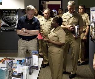 | Keywords: US Navy 100507-N-7227H-076 Secretary of the Navy Ray Mabus meets with Lt. Cmdr. Olivia Bethea to learn first-hand about marketing and advertising strategies for the Navy.jpg en MILLINGTON Tenn May 7 2010 Secretary of the Navy SECNAV the Honorable Ray Mabus meets with Lt Cmdr Olivia Bethea divisional director of Advertising Plans to learn first-hand about marketing and advertising strategies for the Navy Mabus toured Naval Support Activity Mid-South in Millington Tenn and met with base leadership as well as service members and families directly affected by recent flooding The base was closed to residents and non-mission essential personnel after two days of rain dumped more than 14 inches in the area May 1 and 2 causing severe flooding on parts of the base U s Navy photo by Mass Communication specialist 2nd Class Joshua Hammond/Released 2010-05-07 100507-N-7227H-076 Navy http //www navy mil/view_image asp id 85239 U s Navy photo by Mass Communication specialist 2nd Class Joshua Hammond PD-USGov-Military-Navy Naval Support Activity Mid-South Ray Mabus |