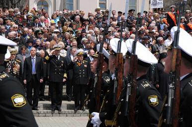 | Keywords: US Navy 100508-N-8721D-081 Vice Adm. John M. Bird, Commander, U.S. 7th Fleet, salutes alongside Russian Federation Navy officials during a wreath laying ceremony at the Eternal Flame memorial of the Russian Pacific Fleet.jpg en VLADIVOSTOK Russia May 8 2010 Vice Adm John M Bird Commander U S 7th Fleet salutes alongside Russian Federation Navy officials during a wreath laying ceremony at the Eternal Flame memorial of the Russian Pacific Fleet The U s 7th Fleet command ship USS Blue Ridge LCC 19 and the embarked staff of Commander U S 7th Fleet are in Vladivostok on a goodwill visit to participate in Russian Victory Day U S Navy photo by Mass Communication Specialist 3rd Class Devon Dow/Released 2010-05-08 100508-N-8721D-081 Navy http //www navy mil/view_image asp id 85246 U S Navy photo by Mass Communication Specialist 3rd Class Devon Dow PD-USGov-Military-Navy Aboard USS Blue Ridge LCC-19 John M Bird |