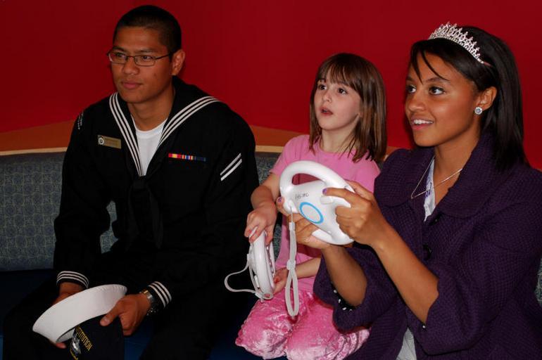 | Keywords: US Navy 100510-N-0869H-157 A girl plays a video game at Sacred Heart Children's Hospital.jpg en SPOKANE Wash May 10 2010 Airman Apprentice Mark Gonzales left from San Diego assigned to USS Constitution watches a patient and Myryda Johnson a Lilac Festival Princess from Medical Lake High School in Medical Lake Wash play a video game at Sacred Heart Children's Hospital Gonzales and Johnson handed out ball caps to patients during Spokane Navy Week held in conjunction with the Spokane Lilac Festival Spokane Navy Week is one of 20 Navy Weeks planned across America for 2010 Navy Weeks show Americans the investment they have made in their Navy and increase awareness in cities that do not have a significant Navy presence U S Navy photo by Senior Chief Mass Communication Specialist Susan Hammond/Released 2010-05-10 100510-N-0869H-157 Navy http //www navy mil/view_image asp id 85291 U S Navy photo by Senior Chief Mass Communication Specialist Susan Hammond PD-USGov-Military-Navy Spokane Washington Medical Lake Washington Spokane Navy Week |