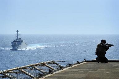 | Keywords: US Navy 100528-N-3136P-056 An Italian navy visit, board, search and seizure team member secures the flight deck aboard the Military Sealift Command container and roll-on-roll-off ship USNS LCPL Roy M. Wheat (T-AK 3016).jpg en MEDITERRANEAN SEA May 28 2010 An Italian navy visit board search and seizure team member secures the flight deck aboard the Military Sealift Command container and roll-on/roll-off ship USNS LCPL Roy M Wheat T-AK 3016 during exercise Phoenix Express 2010 Phoenix Express is a two-week exercise designed to strengthen maritime partnerships and enhance stability in the region through increased interoperability and cooperation among partners from Africa Europe and the U S U S Navy photo by Mass Communication Specialist 2nd Class Jimmy C Pan/Released 2010-05-28 100528-N-3136P-056 Navy http //www navy mil/view_image asp id 86299 U S Navy photo by Mass Communication Specialist 2nd Class Jimmy C Pan PD-USGov-Military-Navy USNS LCpl Roy M Wheat T-AK-3016 Phoenix Express 2010 HK MP5 Comandante Foscari P 493 |