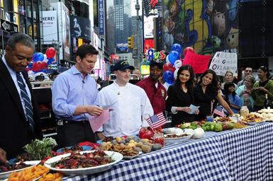 | Keywords: US Navy 100529-N-3041C-068 Navy Culinary Specialist 1st Class Keith Combo and Coast Guard Food Service Specialist 2nd Class Robert Runn compete in a cookout on ABC's Good Morning America in Times Square.jpg en NEW YORK May 29 2010 Navy Culinary Specialist 1st Class Keith Combo and Coast Guard Food Service Specialist 2nd Class Robert Runn compete in a cookout on ABC's Good Morning America in Times Square as a part of Fleet Week New York 2010 Approximately 3 000 Sailors Marines and Coast Guardsmen are participating in the 23rd Fleet Week New York which is taking place through June 2 Fleet Week has been New York City's celebration of the sea services since 1984 U S Navy photo by Mass Communication Specialist Seaman Jennifer Castillo/Released 2010-05-29 100529-N-3041C-068 Navy http //www navy mil/view_image asp id 86161 U S Navy photo by Mass Communication Specialist Seaman Jennifer Castillo PD-USGov-Military-Navy Fleet Week New York 2010 Outdoor barbecues Good Morning America |