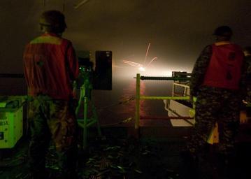 | Keywords: US Navy 100603-N-2757S-007 Airman Morgan Lindsey from Bowling Green, Ky. fires training rounds from a M2HB .50 caliber machine gun during a live-fire exercise aboard the aircraft carrier USS George Washington (CVN 73).jpg en EAST CHINA SEA June 3 2010 Airman Morgan Lindsey from Bowling Green Ky fires training rounds from a M2HB 50 caliber machine gun during a live-fire exercise aboard the aircraft carrier USS George Washington CVN 73 George Washington is underway from its permanently forward-deployed port at Commander Fleet Activities Yokosuka supporting security and stability in the western Pacific Ocean U S Navy photo by Mass Communication Specialist 3rd Class Jeffrey Stewart/Released 2010-06-03 100603-N-2757S-007 Navy http //www navy mil/view_image asp id 86669 U S Navy photo by Mass Communication Specialist 3rd Class Jeffrey Stewart PD-USGov-Military-Navy Aboard USS George Washington CVN-73 Browning M2 of the US Navy Tracers Weapon training Military activities at night |