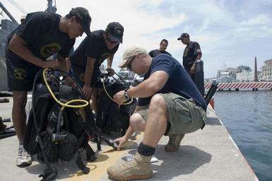 | Keywords: US Navy 100706-N-1134L-061 Navy Diver 1st Class Shawn Cooley, assigned to Company 2-6 of Mobile Diving and Salvage Unit (MDSU) 2, sets up dive gear with Mexican navy divers.jpg en VERACRUZ Mexico July 6 2010 Navy Diver 1st Class Shawn Cooley assigned to Company 2-6 of Mobile Diving and Salvage Unit MDSU 2 sets up dive gear with Mexican navy divers a joint training mission in Veracruz Mexico MDSU-2 is participating in Navy Diver-Southern Partnership Station a multinational partnership engagement designed to increase interoperability and partner nation capacity through diving operations U S Navy photo by Mass Communication Specialist 2nd Class Chris Lussier/Released 2010-07-06 100706-N-1134L-061 Navy http //www navy mil/view_image asp id 88198 U S Navy photo by Mass Communication Specialist 2nd Class Chris Lussier PD-USGov-Military-Navy Images from US Navy location VERACRUZ Mexico United States Navy Divers |