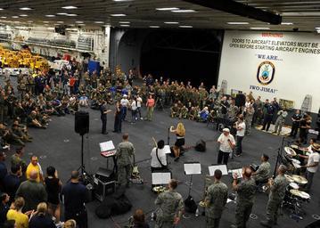 | Keywords: US Navy 100809-N-4153W-342 Latin singer Carolina La O and the U.S. Air Force band, Nueva Armonia, entertain Sailors, Soldiers and Marines in the hangar bay of the multipurpose amphibious assault ship USS Iwo Jima (LHD 7).jpg en COVENAS Colombia Aug 10 2010 Latin singer Carolina La O and the U S Air Force band Nueva Armonia entertain Sailors Soldiers and Marines in the hangar bay of the multipurpose amphibious assault ship USS Iwo Jima LHD 7 Iwo Jima is operating off the coast of Colombia supporting Continuing Promise a four-month humanitarian and civic assistance mission through Latin America and the Caribbean U S Navy photo by Mass Communication Specialist 2nd Class Bryan Weyers/Released 2010-08-10 100809-N-4153W-342 Navy http //www navy mil/view_image asp id 90151 U S Navy photo by Mass Communication Specialist 2nd Class Bryan Weyers PD-USGov-Military-Navy Aboard USS Iwo Jima LHD-7 Military bands of the United States Air Force Carolina La O |
