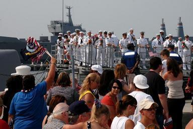 | Keywords: US Navy 100811-N-5292M-493 Family and friends wait on the pier as the guided-missile cruiser USS San Jacinto (CG 56) arrives at Naval Station Norfolk.jpg en NORFOLK Aug 11 2010 Family and friends wait on the pier as the guided-missile cruiser USS San Jacinto CG 56 arrives at Naval Station Norfolk San Jacinto is returning from a seven-month deployment to the U S 5th and 6th Fleet areas of responsibility San Jacinto conducted counter-piracy operations assisted two merchant ships with medical evacuations and crew members completed six community relief events at schools and retirement homes San Jacinto also participated in multi-national exercises with Australia South Korea Pakistan Israel Greece Jordan and Great Britain U S Navy photo by Mass Communication Specialist 1st Class Julie Matyascik/Released 2010-08-11 100811-N-5292M-493 Navy http //www navy mil/view_image asp id 90258 U S Navy photo by Mass Communication Specialist 1st Class Julie Matyascik PD-USGov-Military-Navy USS San Jacinto CG-56 |