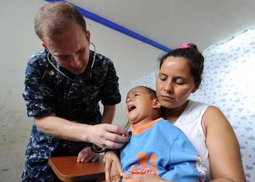 | Keywords: US Navy 100811-N-4153W-184 Lt. Cmdr. Brian Thomas checks the heart beat of a Colombian child at Escuela Ismael Contreras, in Covenas, Colombia.jpg en COVENAS Colombia Aug 11 2010 Lt Cmdr Brian Thomas assigned to the National Naval Medical Center in Bethesda Md deployed aboard the multi-purpose amphibious assault ship USS Iwo Jima LHD 7 checks the heart beat of a Colombian child at Escuela Ismael Contreras in Covenas Colombia Iwo Jima is operating off the coast of Colombia supporting Continuing Promise 2010 a humanitarian and civic assistance mission The assigned medical and engineering staff embarked aboard Iwo Jima are working with partner nation's teams to provide medical dental veterinary and engineering assistance to eight different nations U S Navy photo by Mass Communication Specialist 2nd Class Bryan Weyers/Released 2010-08-11 100811-N-4153W-184 Navy http //www navy mil/view_image asp id 90204 U S Navy photo by Mass Communication Specialist 2nd Class Bryan Weyers PD-USGov-Military-Navy Aboard USS Iwo Jima LHD-7 |