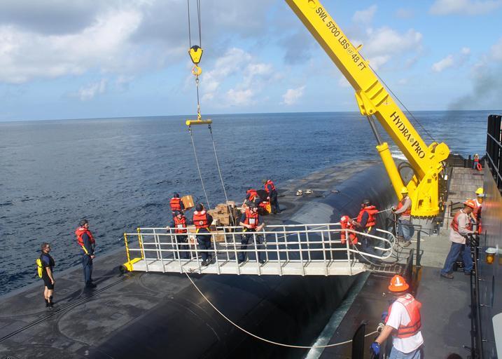 Keywords: US Navy 100816-N-1255R-096 Sailors aboard the Ohio-class ballistic missile submarine USS Rhode Island (SSBN 740) load food stores during an open-ocean stop for personnel and cargo.jpg en ATLANTIC OCEAN Aug 16 2010 Sailors aboard the Ohio-class ballistic missile submarine USS Rhode Island SSBN 740 load food stores during an open-ocean stop for personnel and cargo Rhode Island is conducting its 49th strategic deterrent patrol U S Navy photo by Lt Rebecca Rebarich/Released 2010-08-16 100816-N-1255R-096 Navy http //www navy mil/view_image asp id 90591 U S Navy photo by Lt Rebecca Rebarich PD-USGov-Military-Navy USS Rhode Island SSBN-740