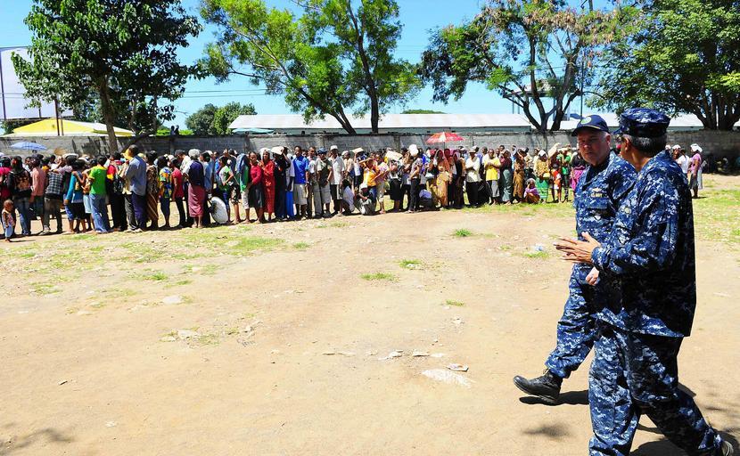 Keywords: US Navy 100819-N-6410J-212 Rear Adm. Thomas F. Carney, Deputy Chief of Staff for Plans, Policies and Requirements, meets with Cmdr. Bharat Patel, site officer-in-charge at Saint Maria Schoo Suai medical civic action program, du.jpg en DILI Timor-Leste Aug 19 2010 Rear Adm Thomas F Carney Deputy Chief of Staff for Plans Policies and Requirements meets with Cmdr Bharat Patel site officer-in-charge at Saint Maria Schoo Suai medical civic action program during a tour of site operations Seabees assigned to Naval Mobile Construction Battalion NMCB 11 and engineers from Australia and Timor-Leste are working together as part of the Pacific Partnership 2010 project renovating buildings at the school Pacific Partnership is the fifth in a series of annual U S Pacific Fleet humanitarian and civic assistance endeavors to strengthen regional partnerships U S Navy photo by Mass Communication Specialist 3rd Class Matthew Jackson/Released 2010-08-19 100819-N-6410J-212 Navy http //www navy mil/view_image asp id 90680 U S Navy photo by Mass Communication Specialist 3rd Class Matthew Jackson PD-USGov-Military-Navy Images from US Navy location Dili East Timor Thomas Carney |