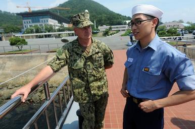 | Keywords: US Navy 100826-N-9818V-615 Master Chief Petty Officer of the Navy (MCPON) Rick West speaks with a Republic of Korea navy sailor during his visit to the Korean Turtle Ship.jpg en CHINHAE Republic of Korea Aug 26 2010 Master Chief Petty Officer of the Navy MCPON Rick West speaks with a Republic of Korea navy sailor during his visit to the Korean Turtle Ship The Turtle Ship was the first ironclad warship in the world shaped like a turtle that was invented and built by Adm Yi Soon Shin in 1592 U S Navy photo by Mass Communication Specialist 1st Class Jennifer A Villalovos/Released 2010-08-26 100826-N-9818V-615 Navy http //www navy mil/view_image asp id 90885 U S Navy photo by Mass Communication Specialist 1st Class Jennifer A Villalovos PD-USGov-Military-Navy Rick D West Images from US Navy location Jinhae South Korea Sailors of the Republic of Korea Navy |