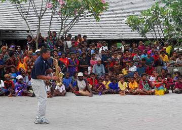 | Keywords: US Navy 100904-N-4044H-400 U.S. Pacific Fleet Band member Musician 3rd Class Jason Gay, embarked aboard the Royal Australian Navy landing ship heavy HMAS Tobruk (L50), plays the saxophone during a concert at the local market.jpg en KOKOPO Papua New Guinea Sept 4 2010 U S Pacific Fleet Band member Musician 3rd Class Jason Gay embarked aboard the Royal Australian Navy landing ship heavy HMAS Tobruk L50 plays the saxophone during a concert at the local market A contingent of 64 Sailors and non-governmental organization members assigned to the Military Sealift Command hospital ship USNS Mercy T-AH 19 are embarked aboard Tobruk conducting the final leg of Pacific Partnership 2010 Pacific Partnership is the fifth in a series of annual U S Pacific Fleet humanitarian and civic assistance endeavors aimed to strengthen regional partnerships U S Navy photo by Mass Communication Specialist 2nd Class Eddie Harrison/Released 2010-09-04 100904-N-4044H-400 Navy http //www navy mil/view_image asp id 91279 U S Navy photo by Mass Communication Specialist 2nd Class Eddie Harrison PD-USGov-Military-Navy Aboard USNS Mercy T-AH-19 |