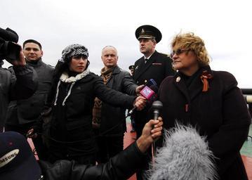 | Keywords: US Navy 100908-N-7638K-167 Sheila Gwaltney speaks to Russian media during an at-sea wreath laying ceremony for Sailors lost during World War II abo.jpg en MURMANSK Russia Sept 8 2010 Sheila Gwaltney the U S consul general to St Petersburg Russia speaks to Russian media during an at-sea wreath laying ceremony for Sailors lost during World War II aboard the liberty ship SS Thomas Donaldson Taylor is in Murmansk to celebrate the close World War II alliance between Russia and the U S and to honor veterans in both countries on the 65th anniversary of the end of World War II Taylor is on a scheduled deployment in the U S 6th Fleet area of responsibility U S Navy photo by Mass Communication Specialist 1st Class Edward Kessler/Released 2010-09-08 100908-N-7638K-167 Navy http //www navy mil/view_image asp id 91461 U S Navy photo by Mass Communication Specialist 1st Class Edward Kessler PD-USGov-Military-Navy Images from US Navy location MURMANSK Russia |