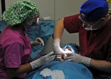 | Keywords: US Navy 100910-N-2908M-014 Lt. Christopher Parks removes a patient's wisdom teeth during oral surgery aboard USS Kearsarge (LHD 3).jpg en MEDITERRANEAN SEA Sept 10 2010 Lt Christopher Parks removes a patient's wisdom teeth during oral surgery aboard the amphibious assault ship USS Kearsarge LHD 3 The Kearsarge Amphibious Ready Group ARG is en route to Pakistan to help provide relief to flood-stricken regions U S Navy photo by Mass Communication Specialist 3rd Class Joshua Mann/Released 2010-09-10 100910-N-2908M-014 Navy http //www navy mil/view_image asp id 91583 U S Navy photo by Mass Communication Specialist 3rd Class Joshua Mann PD-USGov-Military-Navy Aboard USS Kearsarge LHD-3 Oral surgery |