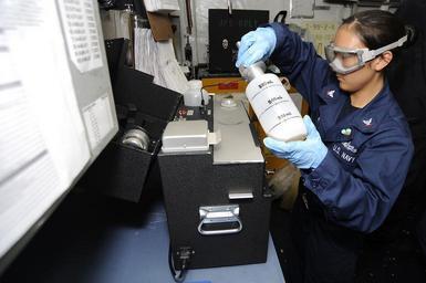 | Keywords: US Navy 100913-N-8335D-040 Engineman 3rd Class Courtney Arce uses a combined-contaminated fuel detector to test fuel for impurities in the oil lab.jpg en PACIFIC OCEAN Sept 12 2010 Engineman 3rd Class Courtney Arce uses a combined-contaminated fuel detector to test fuel for impurities in the oil lab aboard the amphibious dock landing ship USS Harpers Ferry LSD 49 Harpers Ferry is on patrol in the western Pacific Ocean and is part of the permanently forward-deployed Essex Amphibious Ready Group U S Navy photo by Mass Communication Specialist 1st Class Richard Doolin/Released 2010-09-12 100913-N-8335D-040 Navy http //www navy mil/view_image asp id 91555 U S Navy photo by Mass Communication Specialist 1st Class Richard Doolin PD-USGov-Military-Navy Aboard USS Harpers Ferry LSD-49 |
