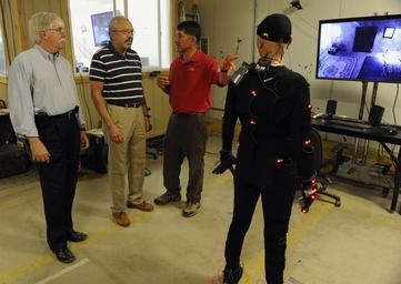 | Keywords: US Navy 100914-N-7676W-065 Clarke Lethin, explains to Dr. Walter F. Jones, left, and George Solhan how a virtual puppeteer interacts with Marines.jpg en CAMP PENDLETON Calif Sept 14 2010 Clarke Lethin technical manager for the Office of Naval Research ONR explains to Dr Walter F Jones left executive director of ONR and George Solhan director of the Expeditionary Maneuver Warfare Combating Terrorism department how a virtual puppeteer right linked to a 3D avatar located within the Afghan environment Infantry Immersion Trainer IIT at Camp Pendleton Calif interacts with Marines Part of the facility-based mixed reality training system virtual projections of characters live role players animatronics and simulated battlefield effects all work together to provide a real-life experience for Marines U S Navy photo by John F Williams/Released 2010-09-14 100914-N-7676W-065 Navy http //www navy mil/view_image asp id 91700 U S Navy photo by John F Williams PD-USGov-Military-Navy Marine Corps Base Camp Pendleton |