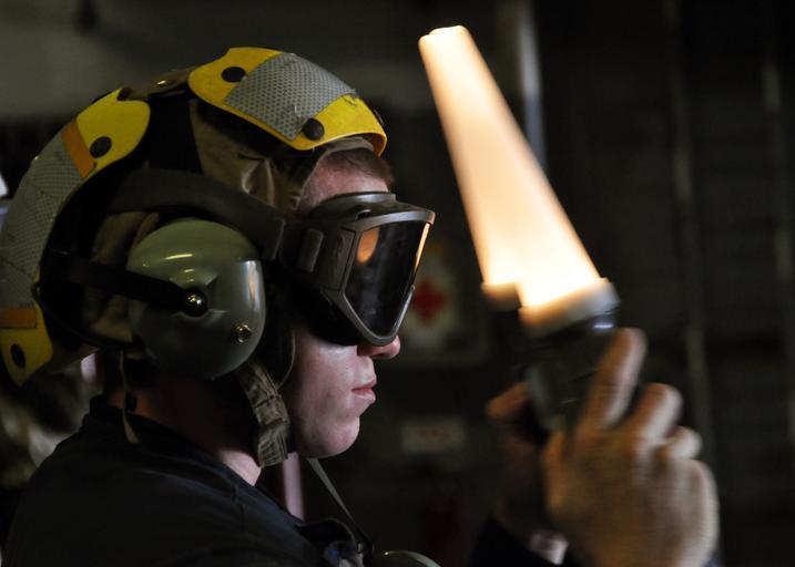 Keywords: US Navy 100918-N-3620B-016 A Sailor guides a landing craft air cushion aboard USS Denver.jpg en PACIFIC OCEAN Sept 18 2010 Boatswain's Mate 2nd Class Jeffery Howard guides a landing craft air cushion LCAC into the well deck of the amphibious transport dock USS Denver LPD 9 Denver is part of the permanently forward-deployed Essex Amphibious Ready Group and is underway for a scheduled patrol in the western Pacific U S Navy photo by Mass Communication Specialist 3rd Class Bryan Blair/Released 2010-09-18 100918-N-3620B-016 Navy http //www navy mil/view_image asp id 91979 U S Navy photo by Mass Communication Specialist 3rd Class Bryan Blair PD-USGov-Military-Navy Aboard USS Denver LPD-9 People with safety earmuffs Marshalling wands |
