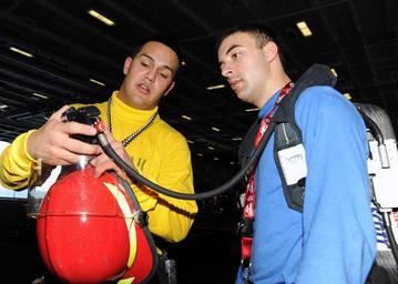 | Keywords: US Navy 100926-N-3885H-064 Aviation Boatswain's Mate (Handling) Airmen Andres Garcia, left, and Anthony Gallegos train with firefighting equipment.jpg en ATLANTIC OCEAN Sept 26 2010 Aviation Boatswain's Mate Handling Airmen Andres Garcia left and Anthony Gallegos both assigned to the air department of the aircraft carrier USS George H W Bush CVN 77 train with firefighting equipment in the ship's hangar bay George H W Bush is conducting training operations in the Atlantic Ocean U S Navy photo by Mass Communication Specialist 3rd Class Nicholas Hall/Released 2010-09-26 100926-N-3885H-064 Navy http //www navy mil/view_image asp id 92112 U S Navy photo by Mass Communication Specialist 3rd Class Nicholas Hall PD-USGov-Military-Navy Aboard USS George H W Bush CVN-77 |