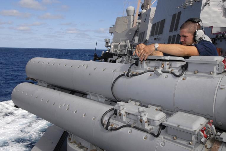 Keywords: US Navy 100927-N-5324W-189 Gunner's Mate 3rd Class Brian Myers conducts maintenance on MK-32 torpedo tubes aboard USS Bainbridge (DDG 96).jpg en ATLANTIC OCEAN Sept 27 2010 Gunner's Mate 3rd Class Brian Myers conducts maintenance on MK-32 torpedo tubes aboard the guided-missile destroyer USS Bainbridge DDG 96 Bainbridge is preparing to participate in Joint Warrior 10-2 a multinational exercise designed to improve interoperability between allied navies and prepare participating crews to conduct combined operations during deployment U S Navy photo by Mass Communication Specialist Seaman Anna Wade/Released 2010-09-27 100927-N-5324W-189 Navy http //www navy mil/view_image asp id 92236 U S Navy photo by Mass Communication Specialist Seaman Anna Wade PD-USGov-Military-Navy USS Bainbridge DDG-96 Gunner's Mate Mark 32 Surface Vessel Torpedo Tubes Joint Warrior 10-2 |