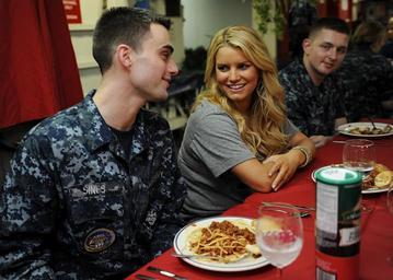 | Keywords: US Navy 101001-N-6427M-201 Information Systems Technician Seaman Todd Sines speaks with singer-actress Jessica Simpson on the mess decks during a U.jpg en ARABIAN SEA Oct 1 2010 Information Systems Technician Seaman Todd Sines from Corpus Christi Texas speaks with singer/actress Jessica Simpson on the mess decks during a USO and Navy Entertainment sponsored visit aboard the aircraft carrier USS Harry S Truman CVN 75 Simpson visited Harry S Truman for a two-day embark to meet and greet Sailors and Marines during the ship's 2010 deployment The Harry S Truman Carrier Strike Group is deployed supporting maritime security operations and theater security cooperation efforts in the U S 5th Fleet area of responsibility U S Navy photo by Mass Communication Specialist Seaman Ryan McLearnon/Released 2010-10-01 101001-N-6427M-201 Navy http //www navy mil/view_image asp id 92326 U S Navy photo by Mass Communication Specialist Seaman Ryan McLearnon PD-USGov-Military-Navy Aboard USS Harry S Truman CVN-75 Jessica Simpson |