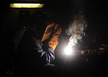 | Keywords: US Navy 101011-N-6427M-048 Hull Maintenance Technician 3rd Class Lisa Ingle, from Auburn, Ga., welds a handle for a storage locker aboard the aircr.jpg en ARABIAN SEA Oct 11 2010 Hull Maintenance Technician 3rd Class Lisa Ingle from Auburn Ga welds a handle for a storage locker aboard the aircraft carrier USS Harry S Truman CVN75 The Harry S Truman Carrier Strike Group is deployed supporting maritime security operations and theater security cooperation efforts in the U S 5th Fleet area of responsibility U S Navy photo by Mass Communication Specialist Seaman Ryan McLearnon/Released 2010-10-11 101011-N-6427M-048 Navy http //www navy mil/view_image asp id 92698 U S Navy photo by Mass Communication Specialist Seaman Ryan McLearnon PD-USGov-Military-Navy Aboard USS Harry S Truman CVN-75 Hull Maintenance Technician United States Navy Manual metal arc welding |