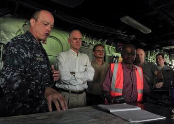 | Keywords: US Navy 101031-N-1531D-044 Capt. Thomas Chassee, commanding officer of the multi-purpose amphibious assault ship USS Iwo Jima (LHD 7), gives a tour.jpg en CARIBBEAN SEA Oct 31 2010 Capt Thomas Chassee commanding officer of the multi-purpose amphibious assault ship USS Iwo Jima LHD 7 gives a tour of the ship's bridge to Dutch Ambassador to Suriname Aart Jacobi center left and Brazilian Ambassador to Suriname Luis Machado The assigned medical and engineering staff embarked aboard Iwo Jima are working with partner nations to provide medical dental veterinary and engineering assistance in eight countries U S Navy photo by Mass Communication Specialist 2nd Class Jonathen E Davis/Released 2010-10-31 101031-N-1531D-044 Navy http //www navy mil/view_image asp id 93503 U S Navy photo by Mass Communication Specialist 2nd Class Jonathen E Davis PD-USGov-Military-Navy Aboard USS Iwo Jima LHD-7 Aart Jacobi José Luiz Machado e Costa |
