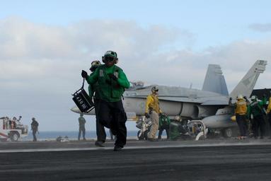 | Keywords: US Navy 101110-N-5684M-074 Aviation Boatswain's Mate (Equipment) Airman Kla Brownell, from Baltimore, Md., runs with a weight board across the bow.jpg en PACIFIC OCEAN Nov 10 2010 Aviation Boatswain's Mate Equipment Airman Kla Brownell from Baltimore Md runs with a weight board across the bow catapults aboard the aircraft carrier USS Ronald Reagan CVN 76 Ronald Reagan is underway completing a composite training unit exercise in preparation for an upcoming deployment U S Navy photo by Mass Communication Specialist 3rd Class Dylan McCord/Released 2010-11-10 101110-N-5684M-074 Navy http //www navy mil/view_image asp id 94060 U S Navy photo by Mass Communication Specialist 3rd Class Dylan McCord PD-USGov-Military-Navy Aboard USS Ronald Reagan CVN-76 Flight deck of USS Ronald Reagan CVN-76 |