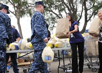 | Keywords: US Navy 101118-N-5694F-080 Sailors assigned to Naval Base Coronado receive complimentary food baskets and turkeys at the Naval Outlying Field Imper.jpg en IMPERIAL BEACH Calif Nov 18 2010 Sailors assigned to Naval Base Coronado receive complimentary food baskets and turkeys at the Naval Outlying Field Imperial Beach Commissary as part of the commissary's 8th annual Thanksgiving giveaway More than 200 baskets were provided to service members by area vendors U S Navy photo by Mass Communication Specialist Seaman Apprentice Michael Feddersen/Released 2010-11-18 101118-N-5694F-080 Navy http //www navy mil/view_image asp id 94303 U S Navy photo by Mass Communication Specialist Seaman Apprentice Michael Feddersen PD-USGov-Military-Navy Turkey meat Naval Outlying Landing Field Imperial Beach Defense Commissary Agency commissaries |