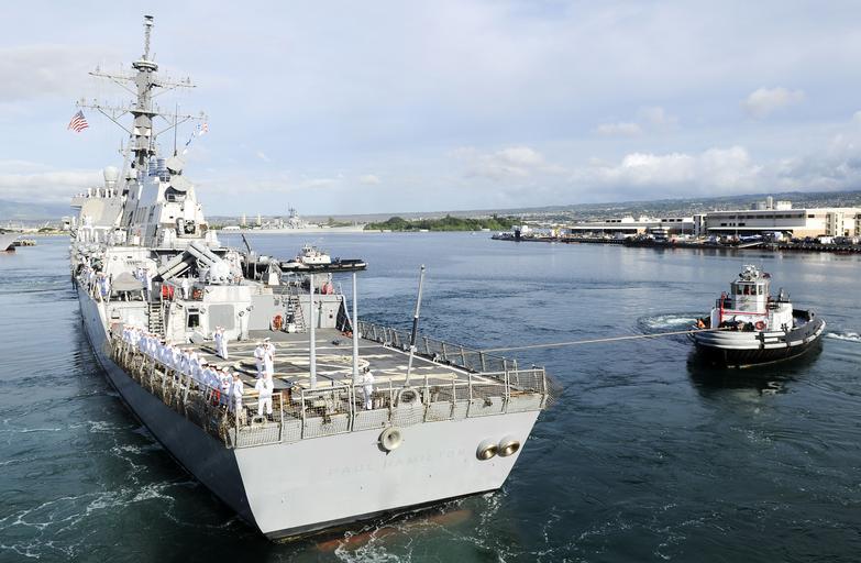 | Keywords: US Navy 101130-N-7498L-026 A tugboat tows the guided-missile destroyer USS Paul Hamilton (DDG 60) as the ship departs Joint Base Pearl Harbor-Hicka.jpg en PEARL HARBOR Nov 30 2010 A tugboat tows the guided-missile destroyer USS Paul Hamilton DDG 60 as the ship departs Joint Base Pearl Harbor-Hickam for an independent deployment to the Middle East and western Pacific Ocean Paul Hamilton is deploying under the Middle Pacific Surface Combatant deployment concept in which Hawaii-based ships deploy to support operations in the U S 5th and 7th Fleet areas of responsibility U S Navy photo by Mass Communication Specialist 2nd Class Mark Logico/Released 2010-11-30 101130-N-7498L-026 Navy http //www navy mil/view_image asp id 94652 U S Navy photo by Mass Communication Specialist 2nd Class Mark Logico PD-USGov-Military-Navy USS Paul Hamilton DDG-60 |