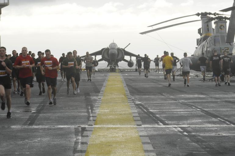 Keywords: US Navy 101206-N-1485C-512 Sailors and Marines participate in a half marathon race aboard USS Peleliu (LHA 5).jpg en PACIFIC OCEAN Dec 6 2010 Sailors and Marines participate in a half marathon race sponsored by Helicopter Marine Medium Squadron HMM 165 Reinforced of the embarked 15th Marine Expeditionary Unit 15th MEU during inclement weather aboard the amphibious assault ship USS Peleliu LHA 5 The race raised more than 3600 for the Semper Fi Fund which helps support injured Marines Peleliu is the flagship of the Peleliu Amphibious Ready Group which is returning to its homeport of San Diego after a seven-month deployment U S Navy photo by Mass Communication Specialist 3rd Class Ian Campbell/Released 2010-12-06 101206-N-1485C-512 Navy http //www navy mil/view_image asp id 95477 U S Navy photo by Mass Communication Specialist 3rd Class Ian Campbell PD-USGov-Military-Navy Aboard USS Peleliu LHA-5 Half marathons |