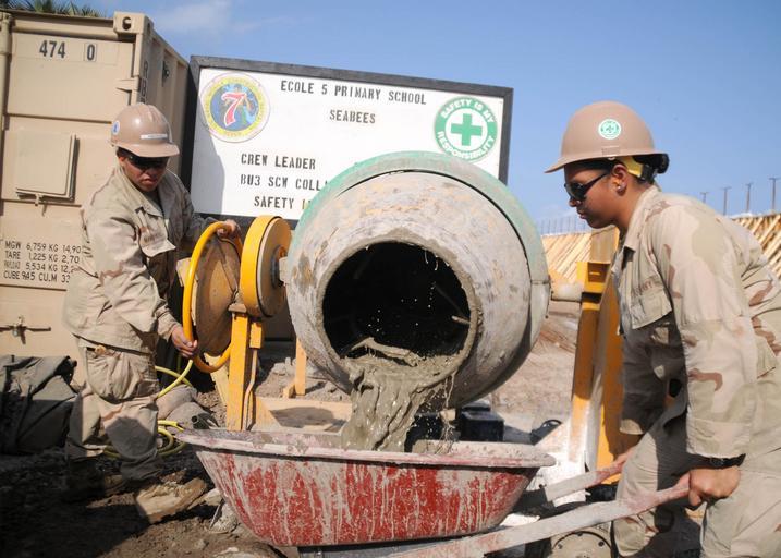 | Keywords: US Navy 101211-N-4440L-025 Builder Constructionman Bianca Manzanero, left, and Builder Constructionman Haani Leah.jpg en DJIBOUTI Dec 11 2010 Builder Constructionman Bianca Manzanero left and Builder Constructionman Haani Leah both assigned to Naval Mobile Construction Battalion NMCB 74 Detail Horn of Africa rinse a mortar mixer used to mix sand cement lime and water to create stucco NMCB-74 Detail Horn of Africa is deployed to Combined Joint Task Force-Horn of Africa to assist in building partner nation capacity and promoting regional stability U S Navy photo by Mass Communication Specialist 2nd Class Michael Lindsey/Released 2010-12-11 101211-N-4440L-025 Navy http //www navy mil/view_image asp id 95353 U S Navy photo by Mass Communication Specialist 2nd Class Michael Lindsey PD-USGov-Military-Navy United States Navy images from Djibouti Cement mixers Wheelbarrows Women in the United States Navy Women with hard hats |