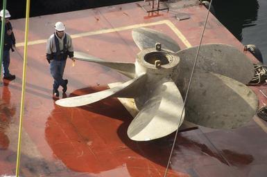 | Keywords: US Navy 101223-N-9643K-525 National Steel and Shipbuilding Company shipyard workers use a barge crane to move the propellers and rudder of the amph.jpg en SAN DIEGO Dec 23 2010 National Steel and Shipbuilding Company shipyard workers use a barge crane to move the propellers and rudder of the amphibious assault ship USS Bonhomme Richard LHD 6 The parts will be trucked across country to a refurbishment facility then returned to the ship Bonhomme Richard is in dry dock through April 2011 U S Navy photo by Chief Mass Communication Specialist Joe Kane/Released 2010-12-23 101223-N-9643K-525 Navy http //www navy mil/view_image asp id 95802 U S Navy photo by Chief Mass Communication Specialist Joe Kane PD-USGov-Military-Navy Aboard USS Bonhomme Richard LHD-6 Ship propellers Photographs by Joseph Kane |