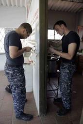 Keywords: US Navy 110201-A-2476M-133 Electrician's Mate 2nd Class Ramon Rodriguez and Electrician's Mate 2nd Class Eric W. Vollrath repair electrical wires f.jpg en COVENAS Colombia Feb 1 2011 Electrician's Mate 2nd Class Ramon Rodriguez and Electrician's Mate 2nd Class Eric W Vollrath repair electrical wires for the Bella Vista schoolhouse in a community service event for Amphibious Southern Partnership Station SPS 2011 SPS is an annual deployment of U S ships to the U S Southern Command area of responsibility in the Caribbean and Latin America U S Army photo by Private 1st Class Lorraine S Mendoza/Released 2011-02-01 110201-A-2476M-133 Navy http //www navy mil/view_image asp id 97138 U S Army photo by Private 1st Class Lorraine S Mendoza PD-USGov-Military-Navy Images from US Navy location COVENAS Colombia