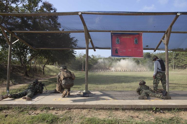 | Keywords: US Navy 110201-M-5402S-022 Colombian marines fire the M249 Squad Automatic Weapon while Sgt. Shelby Mangiaracina, second from left, assigned to Mar.jpg en COVENAS Colombia Feb 1 2011 Colombian marines fire the M249 Squad Automatic Weapon while Sgt Shelby Mangiaracina second from left assigned to Marine Wing Support Squadron MWSS 271 Ground Combat Element ensures proper handling techniques at Marine Infantry Training Base The drills were part of a subject matter expert exchange supporting Amphibious Southern Partnership Station SPS 2011 SPS is an annual deployment of U S ships to the U S Southern Command area of responsibility in the Caribbean and Latin America U S Marine Corps photo by Cpl Jacqueline Sanderfer/Released 2011-02-01 110201-M-5402S-022 Navy http //www navy mil/view_image asp id 97277 U S Marine Corps photo by Cpl Jacqueline Sanderfer PD-USGov-Military-Navy Images from US Navy location COVENAS Colombia Marine Wing Support Squadron 271 M249 light machine guns |
