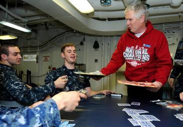 | Keywords: US Navy 110206-N-6632S-624 U.S. Rep. Mo Brooks (R-Ala.) passes out cookies donated by various schools to Sailors aboard the aircraft carrier USS Ge.jpg en ATLANTIC OCEAN Feb 6 2011 U S Rep Mo Brooks R-Ala passes out cookies donated by various schools to Sailors aboard the aircraft carrier USS George H W Bush CVN 77 George H W Bush is underway in the Atlantic Ocean conducting a composite training unit exercise U S Navy photo by Mass Communication Specialist 3rd Class Kevin J Steinberg/Released 2011-02-06 110206-N-6632S-624 Navy http //www navy mil/view_image asp id 97337 U S Navy photo by Mass Communication Specialist 3rd Class Kevin J Steinberg PD-USGov-Military-Navy Aboard USS George H W Bush CVN-77 Mo Brooks |