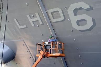 | Keywords: US Navy 110217-N-ZC343-937 A shipyard worker from National Steel and Shipbuilding Company reattaches a funnel drain to the port side of the amphibi.jpg en SAN DIEGO Feb 17 2011 A shipyard worker from National Steel and Shipbuilding Company reattaches a funnel drain to the port side of the amphibious assault ship USS Bonhomme Richard LHD 6 Bonhomme Richard is in dry dock through April 2011 for maintenance and systems upgrades U S Navy photo by Chief Mass Communication Specialist Joe Kane/Released 2011-02-17 110217-N-ZC343-937 Navy http //www navy mil/view_image asp id 97776 U S Navy photo by Chief Mass Communication Specialist Joe Kane PD-USGov-Military-Navy Aboard USS Bonhomme Richard LHD-6 Photographs by Joseph Kane |
