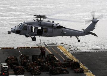 | Keywords: US Navy 110315-N-3729D-119 Sailors aboard the amphibious assault ship USS Peleliu (LHA 5) hook a cargo net of ammunition to an MH-60S Sea Hawk heli.jpg en PACIFIC OCEAN March 15 2011 Sailors aboard the amphibious assault ship USS Peleliu LHA 5 hook a cargo net of ammunition to an MH-60S Sea Hawk helicopter off the coast of Southern California Peleliu is underway conducting an ammunition offload and transfer with the amphibious assault ship USS Makin Island LHD 8 U S Navy photo by Mass Communication Specialist 2nd Class Andrew Dunlap/Released 2011-03-15 110315-N-3729D-119 Navy http //www navy mil/view_image asp id 98751 U S Navy photo by Mass Communication Specialist 2nd Class Andrew Dunlap PD-USGov-Military-Navy Aboard USS Peleliu LHA-5 Underway replenishment MH-60S Seahawk |