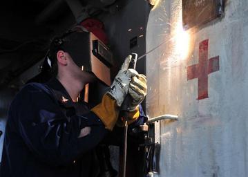 | Keywords: US Navy 110317-N-0074G-017 Hull Maintenance Technician 3rd Class Stephen Laroche welds a metal plate over a hole in a hatch to a medical battle dre.jpg en GULF OF ADEN March 17 2011 Hull Maintenance Technician 3rd Class Stephen Laroche welds a metal plate over a hole in a hatch to a medical battle dressing station to maintain its watertight integrity aboard the aircraft carrier USS Enterprise CVN 65 Enterprise and Carrier Air Wing CVW 1 are on a routine deployment conducting maritime security operations in the U S 5th Fleet area of responsibility U S Navy photo by Mass Communication Specialist Seaman Jesse L Gonzalez/Released 2011-03-17 110317-N-0074G-017 Navy http //www navy mil/view_image asp id 98634 U S Navy photo by Mass Communication Specialist Seaman Jesse L Gonzalez PD-USGov-Military-Navy Aboard USS Enterprise CVN-65 |