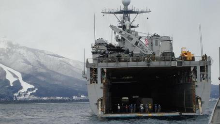 | Keywords: US Navy 110317-N-3185B-027 The amphibious dock landing ship USS Tortuga (LSD 46) is anchored near Mount Kamafuse.jpg en OMINATO Japan March 17 2011 The amphibious dock landing ship USS Tortuga LSD 46 is anchored near Mount Kamafuse to disembark more than 300 military personnel and more than 90 Japan Ground Self-Defense Force vehicles for transportation to Ominato Tortuga is supporting earthquake and tsunami relief efforts during Operation Tomodachi U S Navy photo by Lt Louis Butler/Released 2011-03-17 110317-N-3185B-027 Navy http //www navy mil/view_image asp id 98706 U S Navy photo PD-USGov-Military-Navy Aboard USS Tortuga LSD-46 USS Tortuga LSD-46 in Operation Tomodachi |