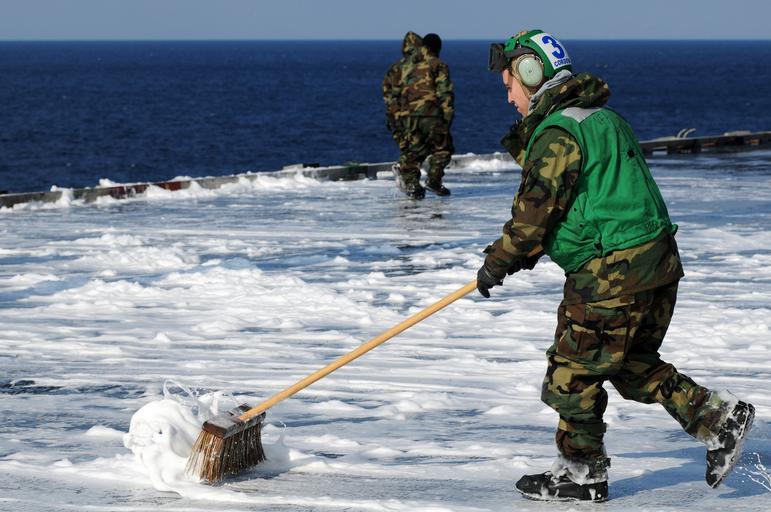 | Keywords: US Navy 110323-N-IC111-533 Aviation Electronics Technician Airman Ryan Cordova, from Albuquerque, N. M., scrubs the flight deck after a countermeas.jpg en PACIFIC OCEAN March 23 2011 Aviation Electronics Technician Airman Ryan Cordova from Albuquerque N M scrubs the flight deck after a countermeasure wash down aboard the aircraft carrier USS Ronald Reagan CVN 76 Sailors scrubbed the external surfaces on the flight deck and island superstructure to remove potential radiation contamination Ronald Reagan is operating off the coast of Japan providing humanitarian assistance as directed in support of Operation Tomodachi U S Navy photo by Mass Communication Specialist 3rd Class Kevin B Gray/Released 2011-03-23 110323-N-IC111-533 Navy http //www navy mil/view_image asp id 98891 U S Navy photo by Mass Communication Specialist 3rd Class Kevin B Gray PD-USGov-Military-Navy Radiation decontamination of the USS Ronald Reagan |