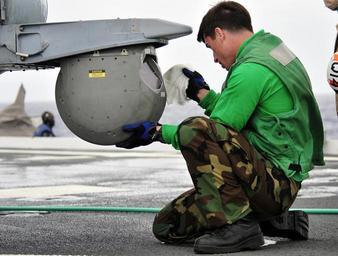 | Keywords: US Navy 110324-N-KB563-834 Aviation Electronics Technician Airman Robert Hunter cleans a forward looking infrared camera on an MH-60S Sea Hawk heli.jpg en PACIFIC OCEAN March 24 2011 Aviation Electronics Technician Airman Robert Hunter cleans a forward looking infrared FLIR camera on an MH-60S Sea Hawk helicopter before flight operations aboard the amphibious transport dock ship USS Cleveland LPD 7 Cleveland is the flagship for Pacific Partnership 2011 which will visit Tonga Vanuatu Papua New Guinea Timor-Leste and the Federated States of Micronesia Pacific Partnership 2011 is a humanitarian assistance initiative promoting cooperation throughout the Pacific U S Navy photo by Mass Communication Specialist 2nd Class Michael Russell/Released 2011-03-24 110324-N-KB563-834 Navy http //www navy mil/view_image asp id 99166 U S Navy photo by Mass Communication Specialist 2nd Class Michael Russell PD-USGov-Military-Navy Aboard USS Cleveland LPD-7 FLIR |