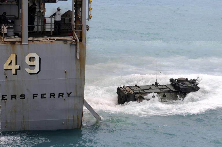 | Keywords: US Navy 110407-N-6692A-051 The amphibious dock landing ship USS Harpers Ferry (LSD 49) launches an amphibious assault vehicle.jpg en OKINAWA Japan April 7 2011 The amphibious dock landing ship USS Harpers Ferry LSD 49 launches an amphibious assault vehicle Harpers Ferry arrives in White Beach Okinawa to disembark components of the 31st Marine Expeditionary Unit 31st MEU after deployment in the western Pacific Ocean U S Navy photo by Mass Communication Specialist 1st Class Geronimo C Aquino/Released 2011-04-07 110407-N-6692A-051 Navy http //www navy mil/view_image asp id 99610 U S Navy photo by Mass Communication Specialist 1st Class Geronimo C Aquino PD-USGov-Military-Navy Aboard USS Harpers Ferry LSD-49 31st Marine Expeditionary Unit Amphibious Assault Vehicle well deck launches |