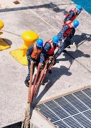 | Keywords: US Navy 110412-N-5538K-208 Sailors assigned to White Beach Naval Facility heave mooring lines from the forward-deployed amphibious assault ship USS.jpg en WHITE BEACH NAVAL FACILITY Okinawa April 12 2011 Sailors assigned to White Beach Naval Facility heave mooring lines from the forward-deployed amphibious assault ship USS Essex LHD 2 Essex is completing a three-month patrol in the western Pacific Ocean that included participation in disaster relief operations in northeastern Japan U S Navy photo by Mass Communication Specialist 2nd Class Casey H Kyhl/Released 2011-04-12 110412-N-5538K-208 Navy http //www navy mil/view_image asp id 99862 U S Navy photo by Mass Communication Specialist 2nd Class Casey H Kyhl PD-USGov-Military-Navy Aboard USS Essex LHD-2 White Beach Naval Facility Mooring bollards |