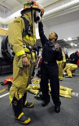 | Keywords: US Navy 110519-N-5574R-124 Damage Controlman 3rd Class Monique Galenspects firefighting equipment during a general quarters drill.jpg en ATLANTIC OCEAN May 19 2011 Damage Controlman 3rd Class Monique Gale assigned to the engineering department aboard the aircraft carrier USS George H W Bush CVN 77 inspects firefighting equipment during a general quarters drill George H W Bush is deployed to the U S 6th Fleet area of responsibility in support of maritime security operations and theater security cooperation efforts U S Navy photo by Mass Communication Specialist Seaman Apprentice Brian Read Castillo/Released 2011-05-19 110519-N-5574R-124 Navy http //www navy mil/view_image asp id 101407 U S Navy photo by Mass Communication Specialist Seaman Apprentice Brian Read Castillo PD-USGov-Military-Navy Aboard USS George H W Bush CVN-77 |