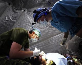 | Keywords: US Navy 110523-F-HS649-100 Canadian Army Cpl. dental technician Tracy Faught administers anesthesia as Royal Australian Navy dentist Lt. Shannon Go.jpg en LAE Papua New Guinea May 23 2011 Canadian Army Cpl dental technician Tracy Faught administers anesthesia as Royal Australian Navy dentist Lt Shannon Godfrey observes during a Pacific Partnership 2011 medical civil action project Pacific Partnership is a five-month humanitarian assistance initiative that completed its mission in Tonga and Vanuatu and will visit Papua New Guinea Timor Leste and the Federated States of Micronesia U S Air Force photo by Tech Sgt Tony Tolley/Released 2011-05-23 110523-F-HS649-100 Navy http //www navy mil/view_image asp id 101343 U S Air Force photo by Tech Sgt Tony Tolley PD-USGov-Military-Navy Images from US Navy location LAE Papua New Guinea |