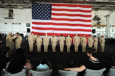 | Keywords: US Navy 110603-N-IS680-060 Command Master Chief Martin King places a new master chief petty officer cover on Master Chief Machinery Repairman Jace.jpg en YOKOSUKA Japan June 3 2011 Command Master Chief Martin King places a new master chief petty officer cover on Master Chief Machinery Repairman Jace Marchant while the newest senior chief petty officers aboard the aircraft carrier USS George Washington CVN 73 wait to be pinned George Washington is the Navy's only full-time forward-deployed aircraft carriern U S Navy photo by Mass Communication Specialist Seaman Alysia R Hernandez/Released 2011-06-03 110603-N-IS680-060 Navy http //www navy mil/view_image asp id 102074 U S Navy photo by Mass Communication Specialist Seaman Alysia R Hernandez PD-USGov-Military-Navy Aboard USS George Washington CVN-73 |