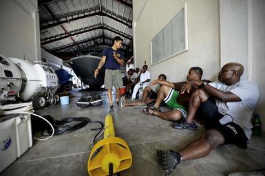 | Keywords: US Navy 110608-N-KB666-232 Navy Diver 1st Class Jimmy Sotelo instructs foreign divers on sub-surface search techniques.jpg en Bridgetown Barbados June 8 2011 Navy Diver 1st Class Jimmy Sotelo assigned to Mobile Diving and Salvage Unit MDSU 2 instructs foreign divers on sub-surface search techniques MDSU-2 is participating in Navy Diver-Southern Partnership Station a multinational partnership engagement designed to increase interoperability and partner nation capacity through diving operations U S Navy photo by Mass Communication Specialist 2nd Class Gregory N Juday/Released 2011-06-08 110608-N-KB666-232 Navy http //www navy mil/view_image asp id 102279 U S Navy photo by Mass Communication Specialist 2nd Class Gregory N Juday PD-USGov-Military-Navy Images from US Navy location Bridgetown Barbados |