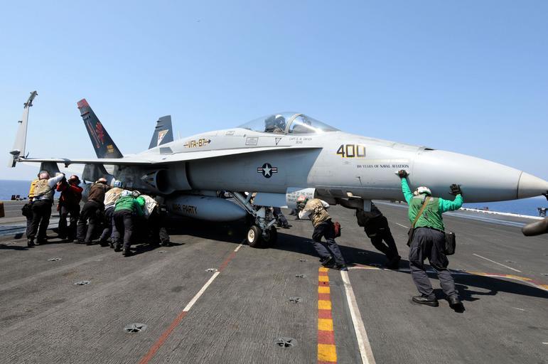 | Keywords: US Navy 110616-N-QL471-299 Sailors maneuver an F-A-18A Hornet aboard the aircraft carrier USS George H.W. Bush (CVN 77).jpg en MEDITERRANEAN SEA June 16 2011 Sailors maneuver an F/A-18A Hornet aboard the aircraft carrier USS George H W Bush CVN 77 George H W Bush is deployed in support of maritime security operations and theater security cooperation efforts in the U S 6th Fleet area of responsibility on its first overseas deployment U S Navy photo by Mass Communication Specialist 3rd Class Billy Ho/Released 2011-06-16 110616-N-QL471-299 Navy http //www navy mil/view_image asp id 102728 U S Navy photo by Mass Communication Specialist 3rd Class Billy Ho PD-USGov-Military-Navy Aboard USS George H W Bush CVN-77 |