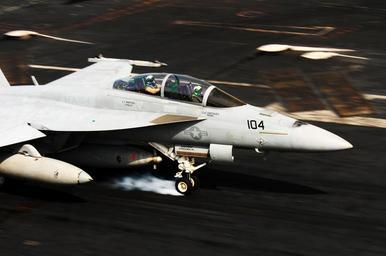 | Keywords: US Navy 110618-N-UO379-240 An F-A-18F Super Hornet makes an arresting gear-assisted landing aboard USS Ronald Reagan (CVN 76).jpg en ARABIAN SEA June 18 2011 An F/A-18F Super Hornet assigned to the Black Knights of Strike Fighter Squadron VFA 154 makes an arresting gear-assisted landing aboard the aircraft carrier USS Ronald Reagan CVN 76 Ronald Reagan and Carrier Air Wing CVW 14 are deployed to the U S 5th Fleet area of responsibility conducting close-air support missions as part of Operation Enduring Freedom U S Navy photo by Mass Communication Specialist 3rd Class Alexander Tidd/Released 2011-06-18 110618-N-UO379-240 Navy http //www navy mil/view_image asp id 102786 U S Navy photo by Mass Communication Specialist 3rd Class Alexander Tidd PD-USGov-Military-Navy F/A-18 Hornet landings on USS Ronald Reagan CVN-76 Strike Fighter Squadron 154 United States Navy |