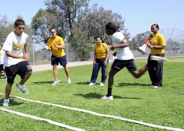 | Keywords: US Navy 110622-N-CW427-033 Sailors cheer students while they complete an obstacle course during a physical fitness field day.jpg en SAN DIEGO June 22 2011 Hospital Corpsman 3rd Class Erick Adkins left Culinary Specialist 1st Class Rachel Mares and Culinary Specialist 2nd Class Neidra Herd assigned to Naval Medical Center San Diego cheer students while they complete an obstacle course during a physical fitness field day at Jean Farb Middle School Members of the medical center staff volunteered to lead more than 650 middle school students in various physical activities such as obstacle courses relay races and a tug-of-war U S Navy photo by Mass Communication Specialist Seaman Clay M Whaley/Released 2011-06-22 110622-N-CW427-033 Navy http //www navy mil/view_image asp id 103312 U S Navy photo by Mass Communication Specialist Seaman Clay M Whaley PD-USGov-Military-Navy Images from US Navy location San Diego California Obstacle courses |